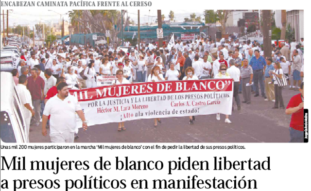 Leer más«Mujeres de blanco» piden liberación de Lara y Castro Llevando bozales en la boca y letreros de «Justicia y Libertad»,