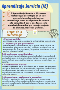 El Aprendizaje Servicio o AS, es una metodología que integra en un solo proyecto tanto los objetivos de aprendizaje como los objetivos de servicio a la comunidad, por lo que favorece la interdisciplinariedad y el trabajo conjunto de alumnos, maestros y tutores.
